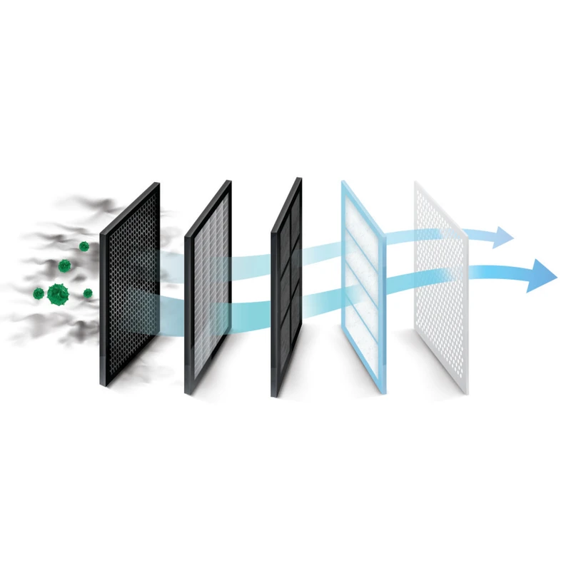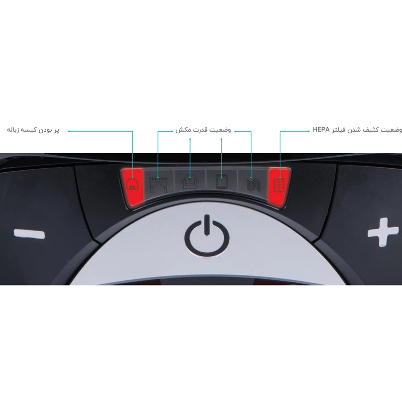 دارای ۸ مرحله فیلتراسیون / تنظیم الکتریکی قدرت مکش / کنترل پنل LED روی بدنه / گیره نگه دارنده ملحقات / نشانگر وضعیت فیلتر HEPA
