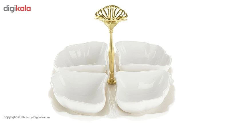 اردورخوری سرامیکی دارای ۴ عدد کاسه و یک سینی - ابعاد هر کاسه: طول ۱۱، عرض ۹.۵ و ارتفاع ۴ سانتیمتر - وزن هر کاسه: ۱۲۰ گرم - ابعاد سینی: طول ۲۰، عرض ۲۰ و ارتفاع ۲.۵ سانتیمتر - وزن سینی: ۴۲۰ گرم - دارای یک میله مرکزی فلزی با ارتفاع ۱۲ سانتیمتر - ابعاد بستهبندی: ۵.۵ × ۲۰.۵ × ۲۰.۵ سانتیمتر - وزن بستهبندی: 1800 گرم