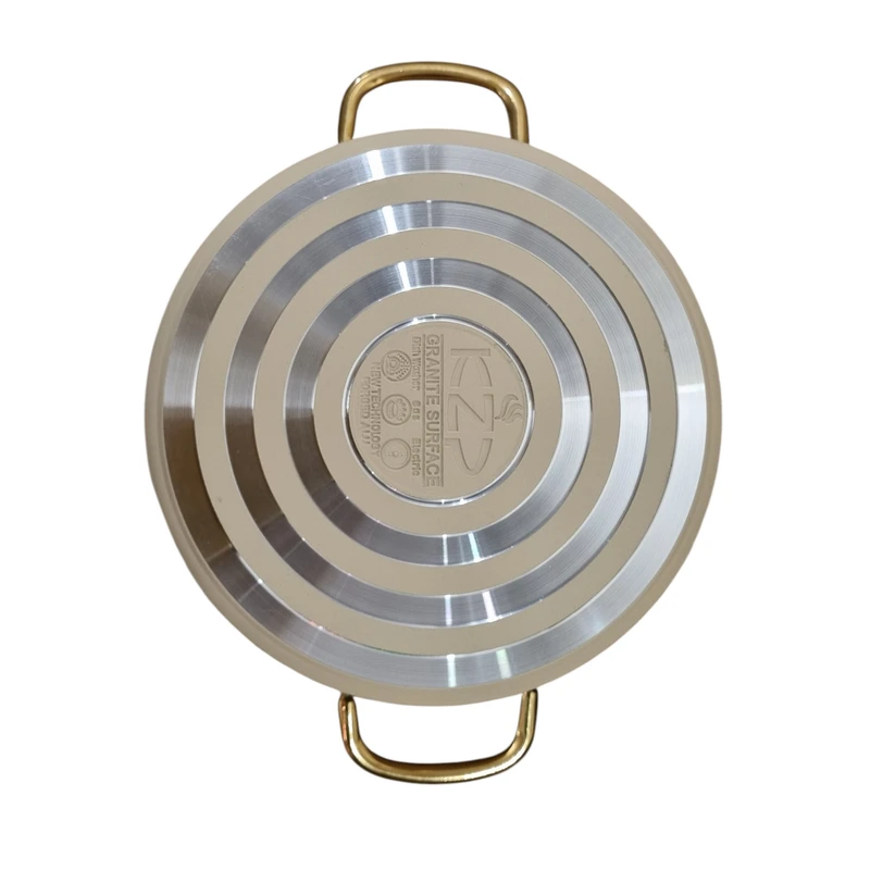 این سرویس پخت و پز شامل 4 عدد قابلمه در سایزهای 20، 24، 28 و 32 سانتیمتر و یک تابه دو دسته و یک تابه تک دسته در سایز 28 سانتیمتر است که با روکش داخلی گرانیت پوشانده شدهاند. جنس بدنه آلومینیومی این ظروف، علاوه بر وزن سبک، مقاومت بالایی در برابر حرارت و ضربه دارد. دربهای پیرکس با سوپاپ تخلیه بخار، امکان مشاهده مراحل پخت را فراهم کرده و از تجمع بخار جلوگیری میکنند. طراحی نچسب داخلی، پختوپز سالم و بدون نیاز به روغن زیاد را ممکن میسازد.
