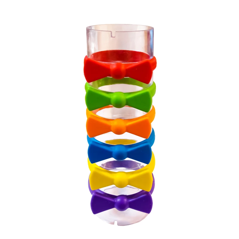 نشانگر بطری جهت تمایز بطری های افراد مختلف ایده آل برای مهمانی ها به منظور رعایت بهداشت فردی دارای شکل فانتزی پاپیون در ۶ رنگ مختلف دارای بسته بندی مبدا برند کشور کانادا
