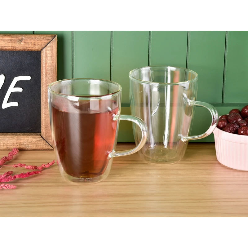 لیوان دو قلو 300 میلی لیتر بی وی کی کد 316108 از جنس پیرکس است که برای نوشیدنی های سرد و گرم اعم از شیر ، آب، قهوه ، نسکافه و..... مناسب می باشد. این محصول قابل شستشو در ماشین ظرفشویی و همچنین بسیار زیبا و با دوام می باشد .