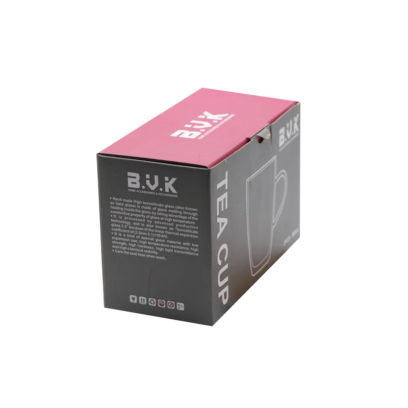 لیوان دو جداره دسته دار تمام پیرکس ۳۰۰ML قابل استفاده روی شعله ی مستقیم و اجاق های ماکروویو قابل شستشو در ماشین ظرفشویی طراح برند بی.وی.کی بدون اضافه کردن کادمیوم یا سرب. بسیار زیبا و با دوام
